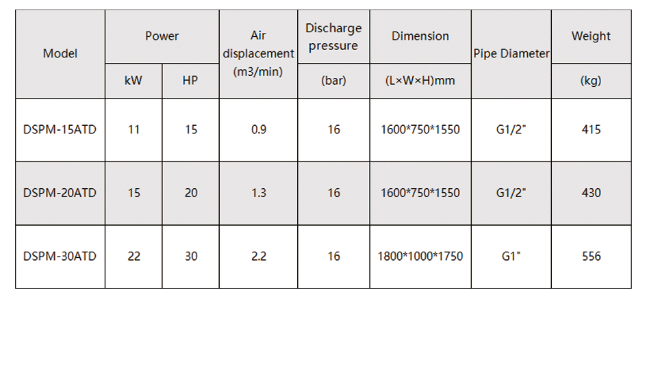 Technical parameters of Laser cutting combined PM motor VSD screw air compressor